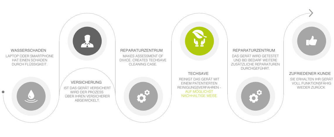 The sooner you act after an incident, the more we can usually save. Thanks to its patented process, the Techsave machine removes corrosion even under the tiniest components – where manual cleaning would never reach. This sets Techsave apart from other liquid-damage cleaning technologies.