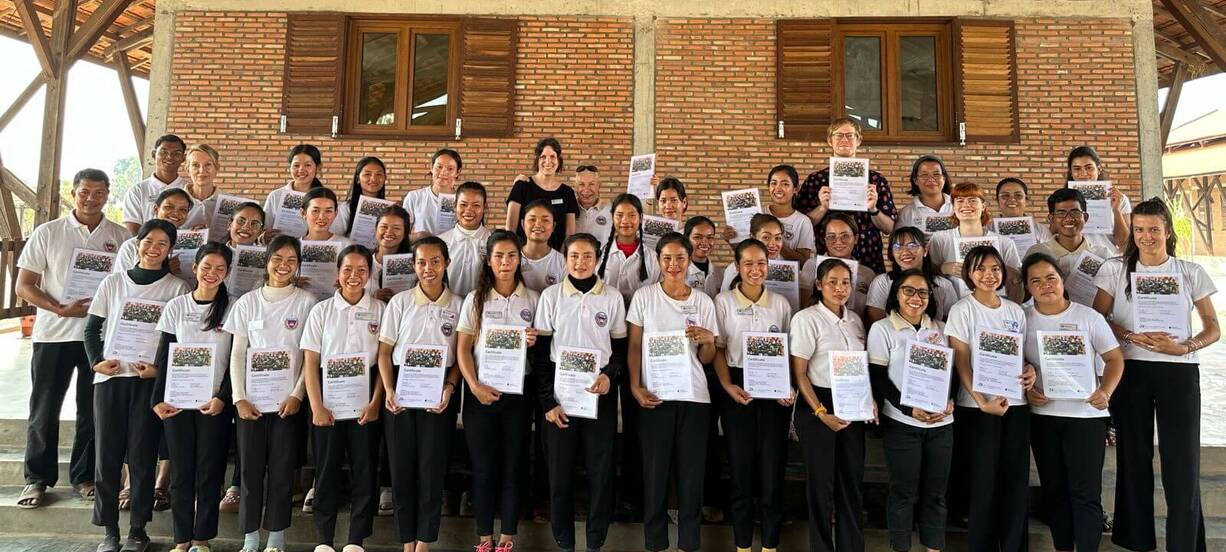 Den Abschluss der Workshopreihe bildete eine feierliche Zertifikatsverleihung, meisterhaft choreografiert von Sam zu kambodschanischer Musik. Die Lehrkräfte wurden einzeln aufgerufen, um stolz ihre Zertifikate entgegenzunehmen. Das abschliessende Gruppenfoto, auf dem alle mit strahlenden Gesichtern zu sehen sind, zeugt vom würdigen Abschluss einer unvergesslichen Woche, bevor wir uns mit einem lachenden und einem weinenden Auge voneinander verabschiedeten.