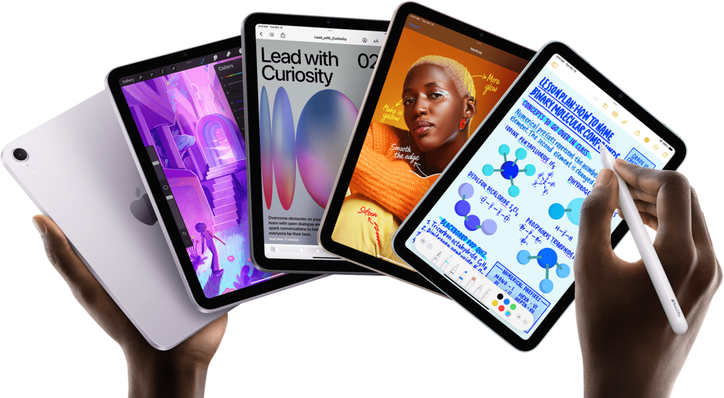 Zubehör: Zubehör separat erhältlich und Änderungen an der Verfügbarkeit vorbehalten. Die Kompatibilität variiert je nach Generation. Der Apple Pencil (1. Generation) erfordert einen USB‑C auf Apple Pencil Adapter, damit er mit dem iPad (10. Generation) funktioniert.