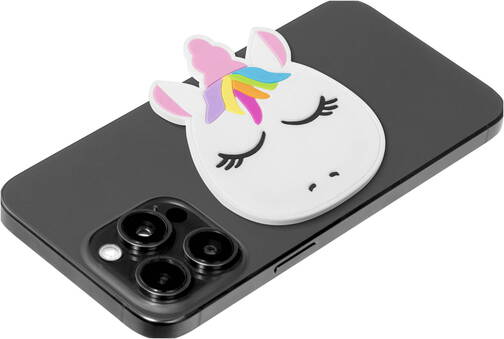 Verleihe deinem iPhone einen Hauch von Magie mit MAGMOJI BADGE SILLY - Unicorn. Dank der MagSafe-Technologie lässt er sich mühelos an jeder magnetischen Oberfläche, einschliesslich MagSafe-kompatibler Hüllen und Geräte, anbringen und verleiht deinem Leben einen verspielten und magischen Touch. Das aus weichem Silikon gefertigte Einhorn sieht nicht nur bezaubernd aus, sondern fühlt sich auch angenehm an und ist damit das perfekte Accessoire für Träumer.