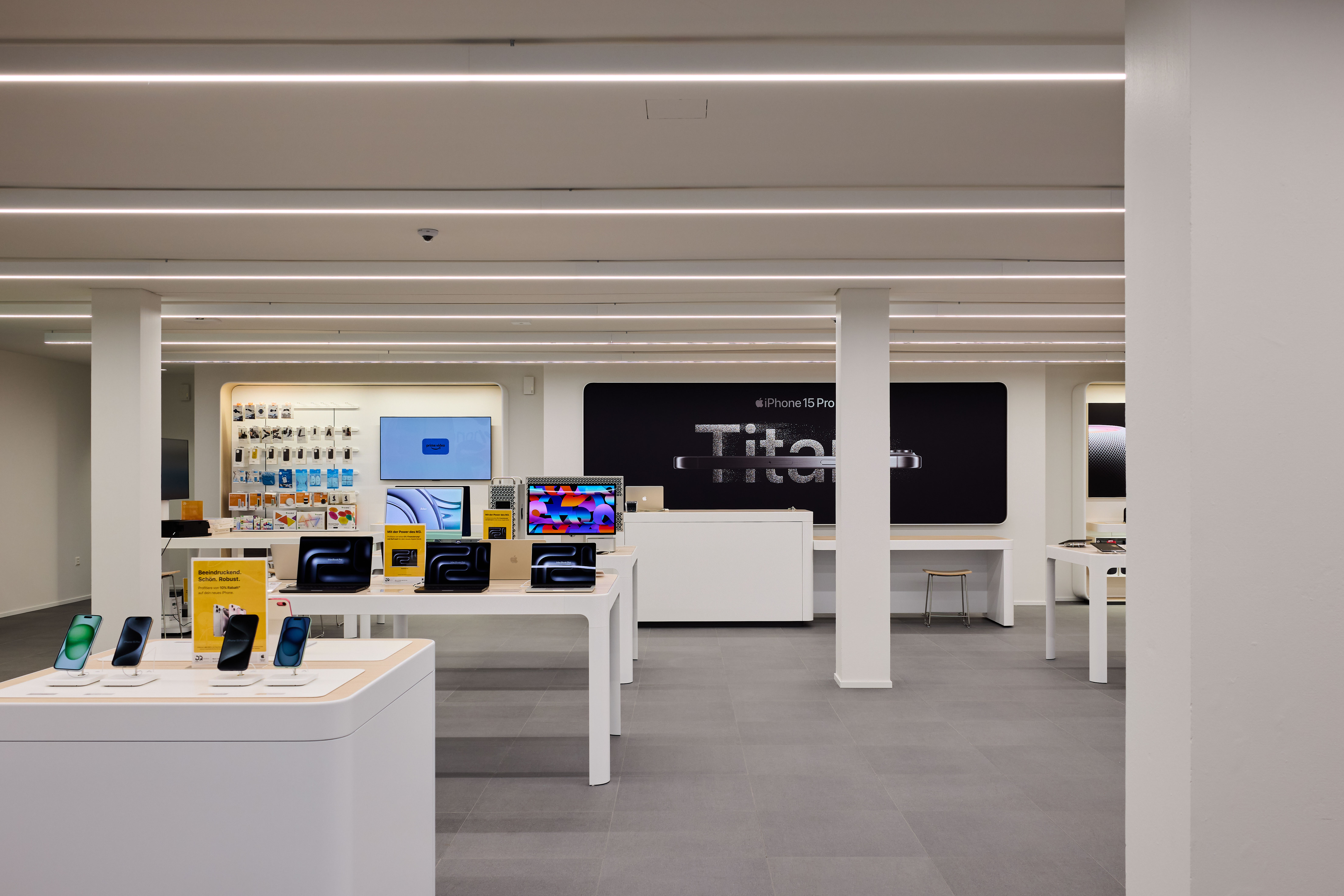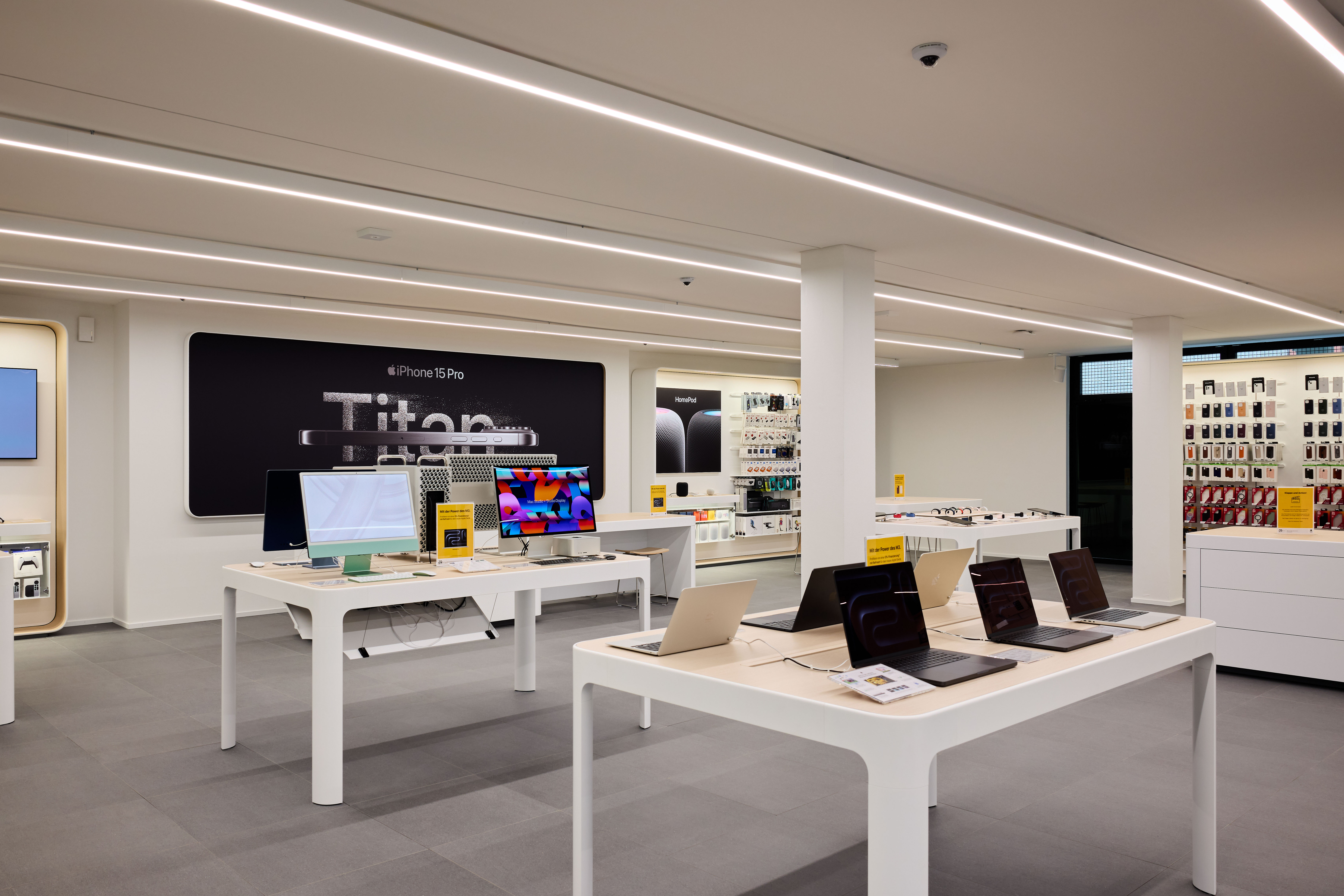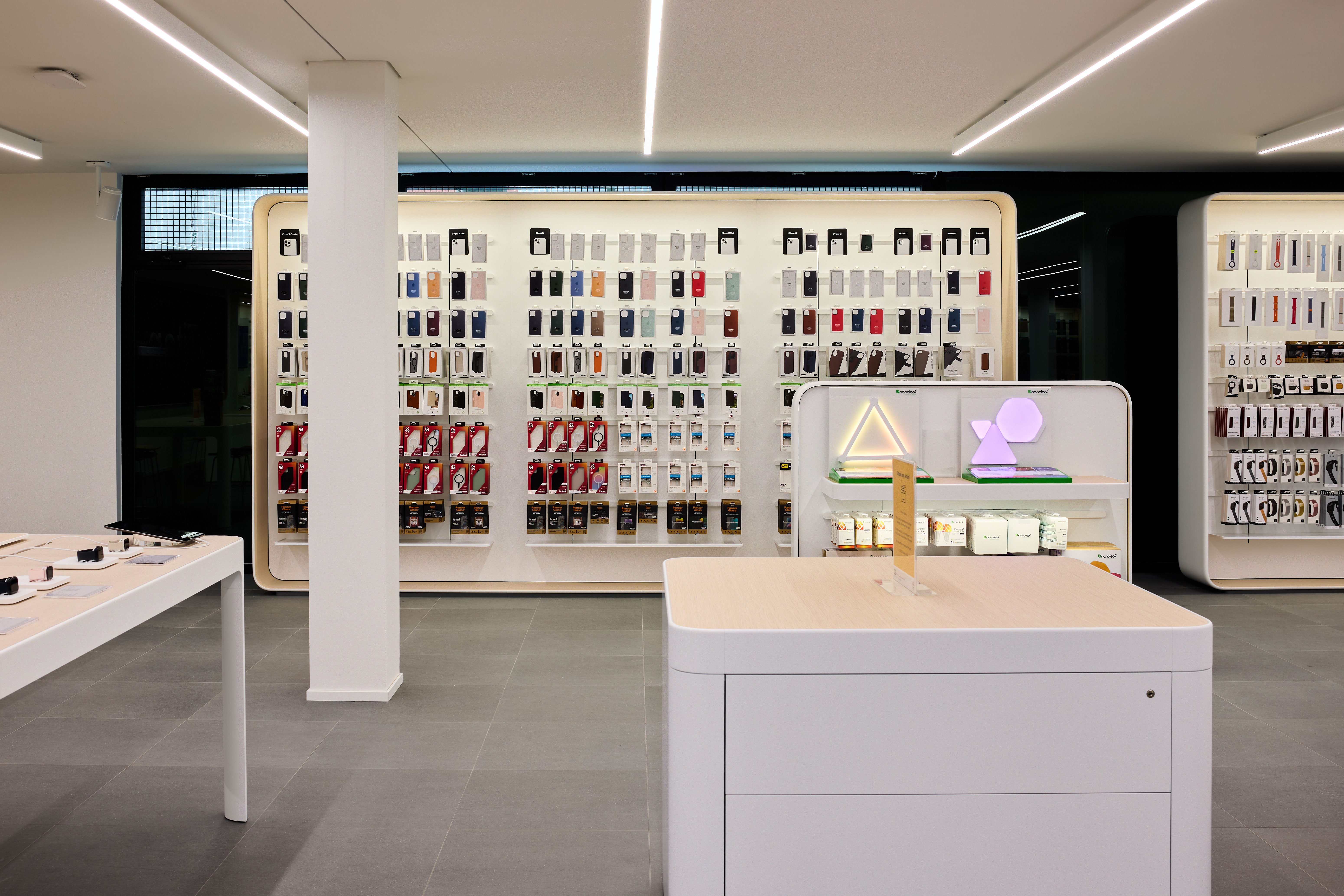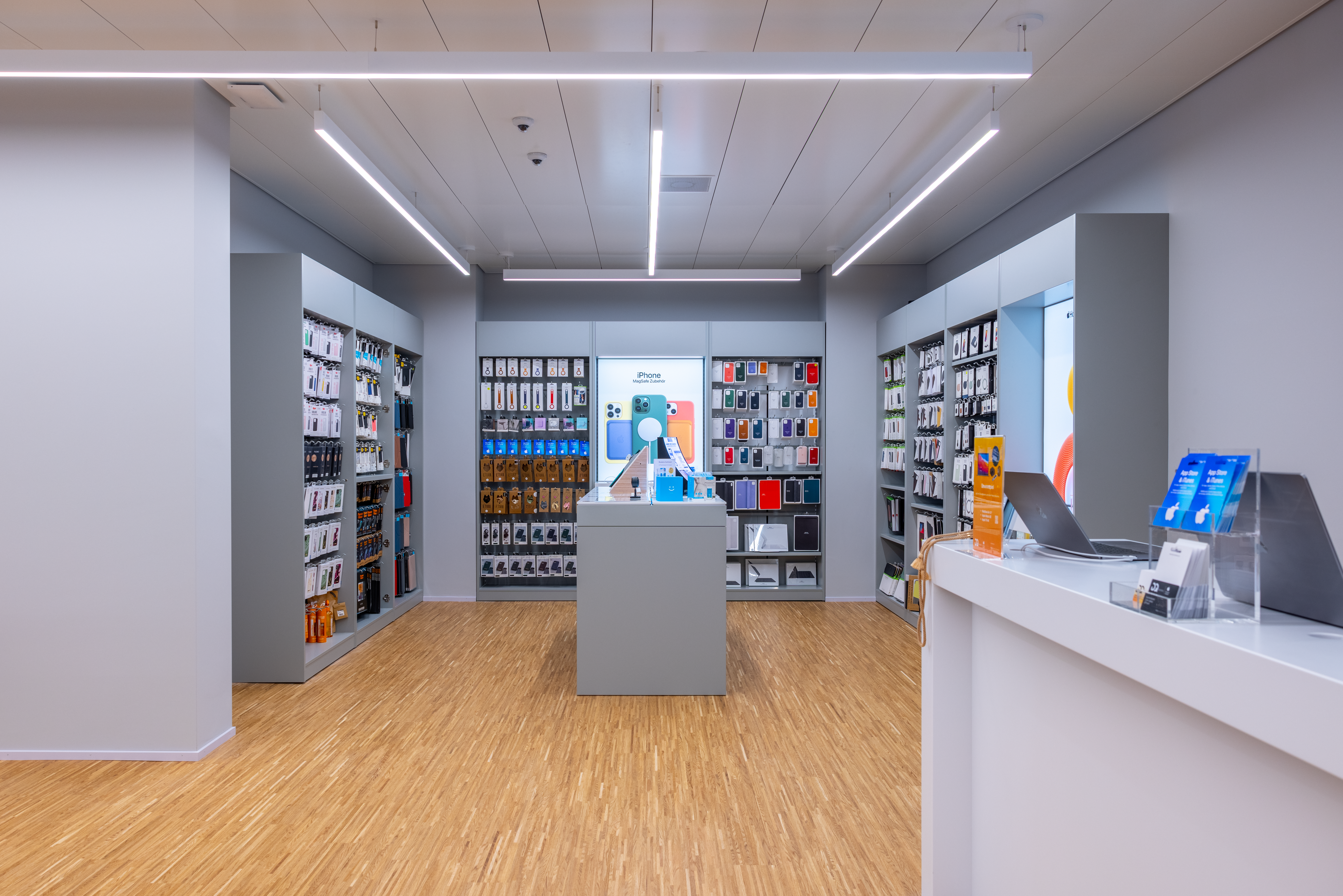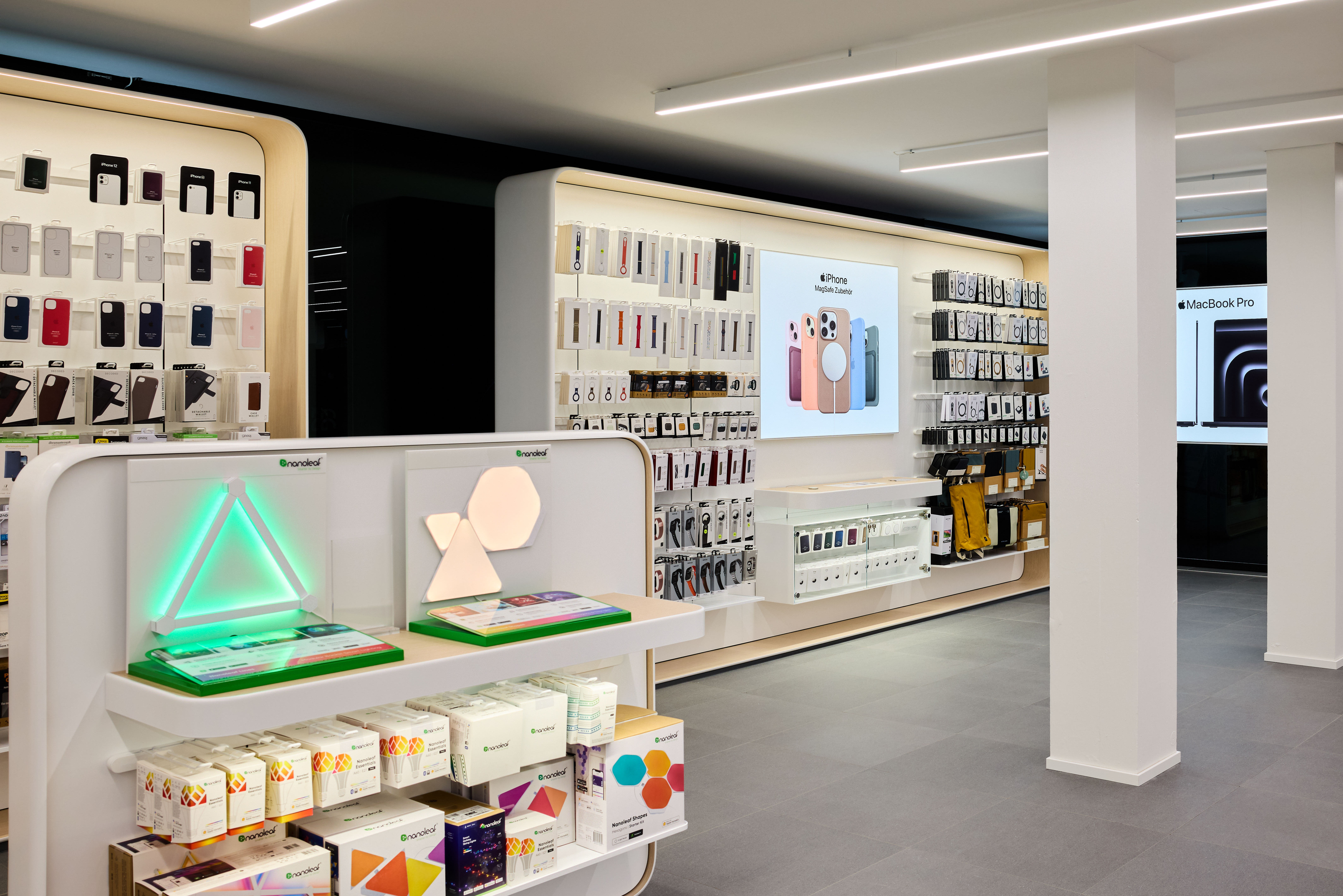 The spacious shop invites you to linger, state-of-the-art screens present new products, the latest devices are waiting to be tested. Bright and transparent, the freshly renovated store provides the perfect stage for products and accessories.